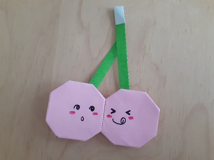 以上で、立体的なさくらんぼの折り紙が完成しました!